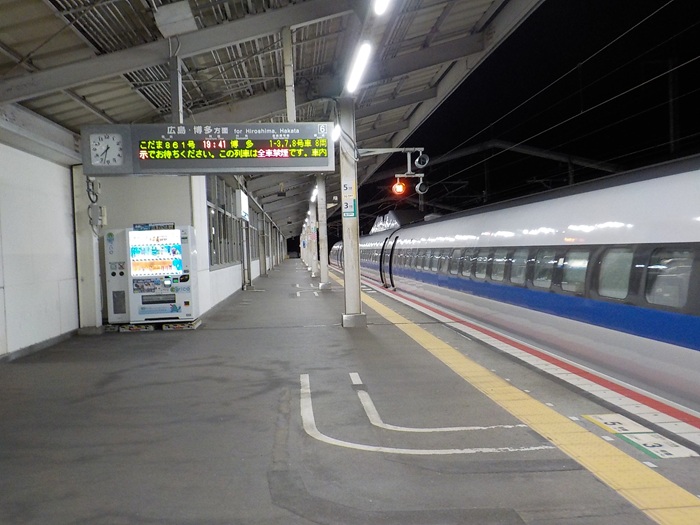 帰りは、福山駅から「のぞみ」に乗り換えて、ビュンと帰りました。三原駅18時12分発、新大阪駅19時37分着。昨日の夕方17時半に新大阪駅を出発し、本当に楽しい26時間の旅でした。おしまい。