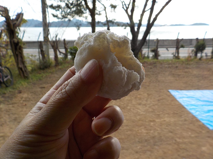 「本と珈琲と、 noboru coffee roasters」で、1時間ちょっと、お餅つきを楽しんで、帰りも竹原駅まで徒歩でした。的場海水浴場や竹原フェリーのりば(海の駅)にも立ち寄りながら。バスを待たずに歩いたおかげで、15時05分の三原駅行きの列車に乗ることができました。そして、明るい時間に再び呉線に乗って海を眺めることができました。