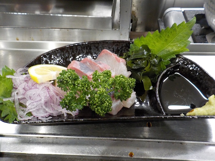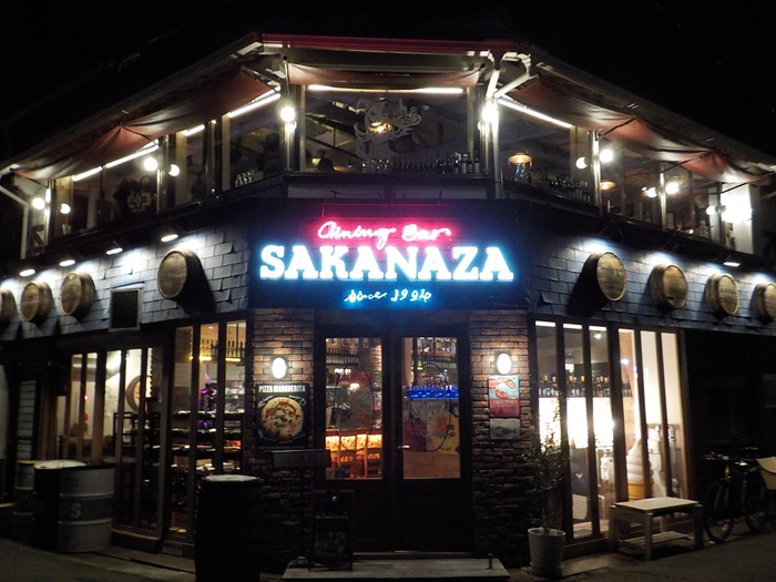 三原駅に到着後、駅前のホテルに直行し、大浴場へ。すっきりしたところで、晩御飯を食べに出かけました。駅前を散策しながら三原港の西側にあるサカナザというお店へ。