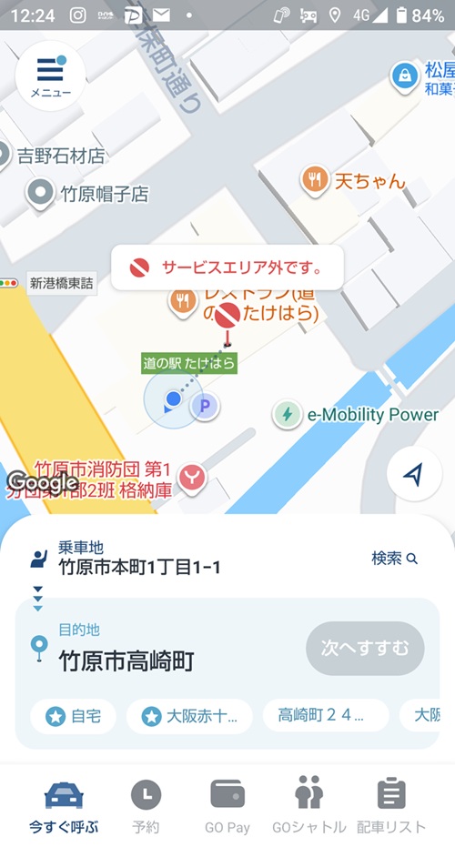 気が付いたら、12時15分。13時の餅つき開始時間が近づいていましたので、タクシーGOでタクシーを呼ぼうと、道の駅まで移動しました。でも、タクシーGO のサービスエリア外でした。涙
