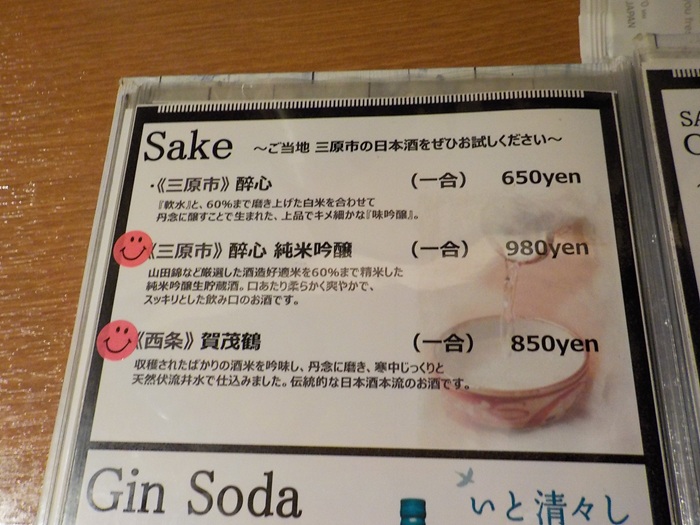 昨晩、三原でやり残したことがありまして・・・。そうなんです。蛸のお刺身を食べてないんです。そこで、16時でも開いてるお店を探しました。そして、「居酒屋たくや」さんに辿り着きました。たこ刺身、カンパチ刺身、モダン焼きに、日本酒(酔心ではない広島のお酒)を。あと、芋焼酎を2杯飲んだような・・・。