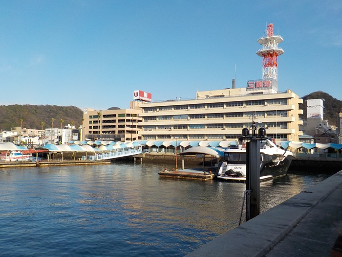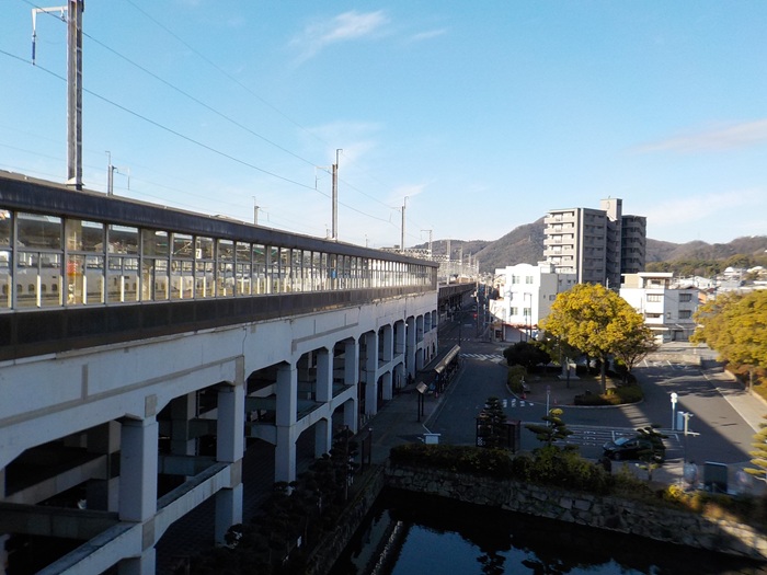 ホテルをチェックアウトして、三原港や三原城跡などの三原駅周辺を散策しました。新幹線の三原駅ホームは、三原城の本丸跡に建っていて、三原城の天主台と新幹線ホームが隣接しています。お城と電車が好きな人にはたまりません。笑