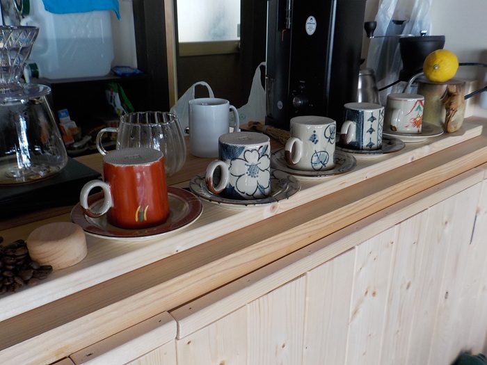 「道の駅たけはら」から歩いて、珈琲焙煎所「本と珈琲と、 noboru coffee roasters」に無事13時前に到着。こちらのオーナー(私の知人)に大阪からの手土産を渡して、軽くお喋りして、近況報告。餅つきの用意をしながら、コーヒーを注いでもらいました。