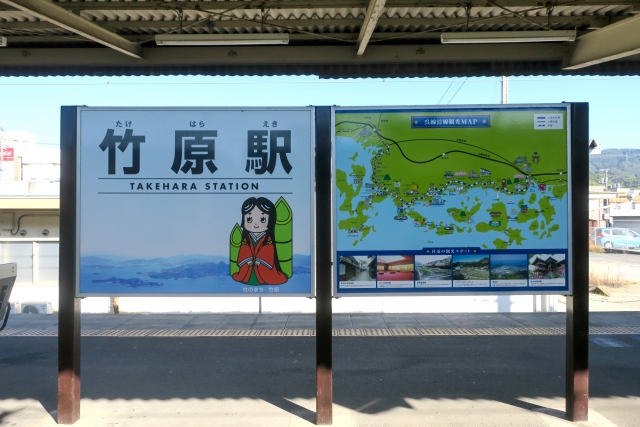 JR三原駅・10時05分発に乗れば、竹原駅に10時40分に到着。